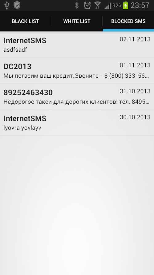 Screenshots of Paranoid SMS Blocker :